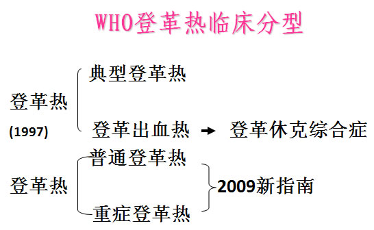 • 根据病情严重程度,可将登革热感染分为普通登革热和重症登革热两种临床类型。