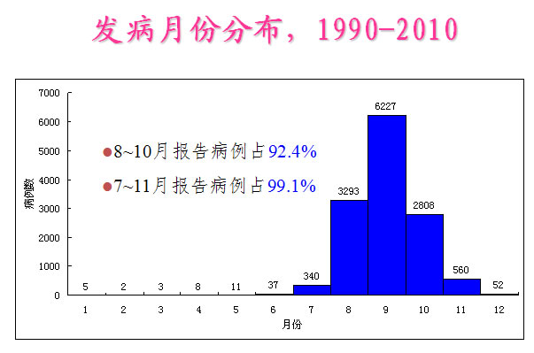 我国各省均有输入病例报告,广东、云南、福建、浙江、海南等南方省份可引发本地登革热流行,主要发生在夏秋季,居家待业和离退休人员较多。