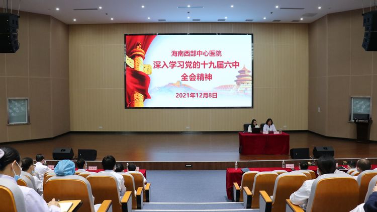 为深入学习贯彻党的十九届六中全会精神,12月8日下午,海南西部中心医院邀请市委宣讲团成员、海南大学客座讲师雷智博作《光辉决议指引伟大征程——学习党的十九届六中全会精神》专题讲座。院党委书记钟美楼主持会议,医院领导班子成员、全院中层干部、全体在职党员及职能科室工作人员共300余人聆听了本次讲座。