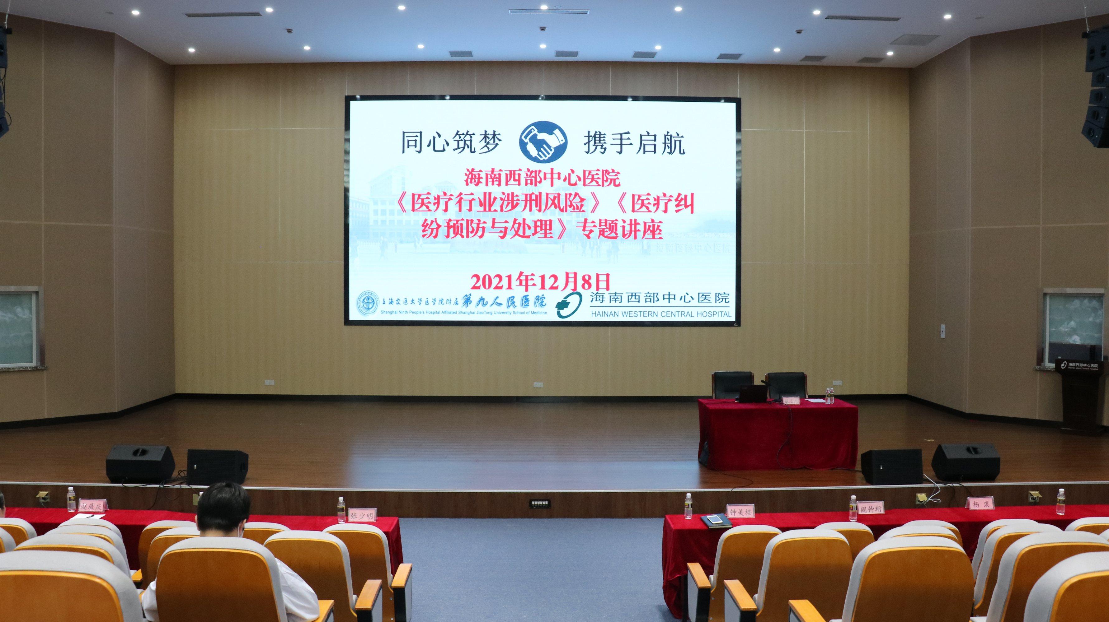 当天下午,海南西部中心医院还邀请了海南省第二中级人民法院刑事第二审判庭庭长蔡汝乐、行政庭法官助理鲁莎莎分别作了题为《医护人员涉刑风险》《医疗纠纷预防与处理》普法讲座。针对医疗领域相关法律、法规、医疗纠纷预防与处理、医患双方法律义务与责任等方面进行了详细解答,并通过典型案例分析了医务人员遇到医疗纠纷时应如何规范化、合法化解决。通过此次讲座,大家对医院工作中常见的法律风险与政策有了进一步认识,为提升医疗质量、保障医疗安全、减少医疗纠纷发生起到了积极的促进作用。