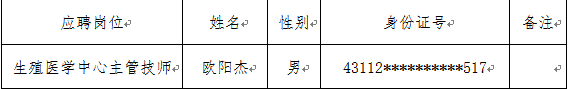 根据《2021年考核招聘生殖医学中心编内专业技术人员实施方案》的有关规定,按照公开、平等、竞争、择优的原则,简历已通过资格审核,现将我院考核招聘编内专业技术人员答辩及技能考试名单公告如下: