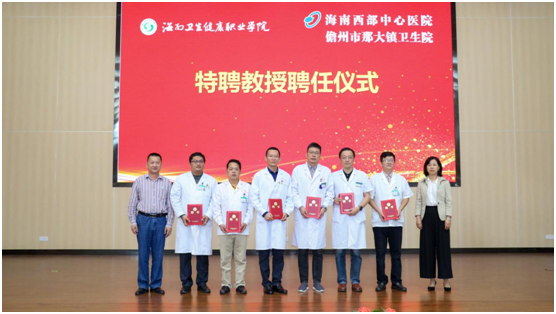 现场,海南卫生健康职业学院还为海南西部中心医院、那大镇卫生院特聘教授颁发教授聘书。