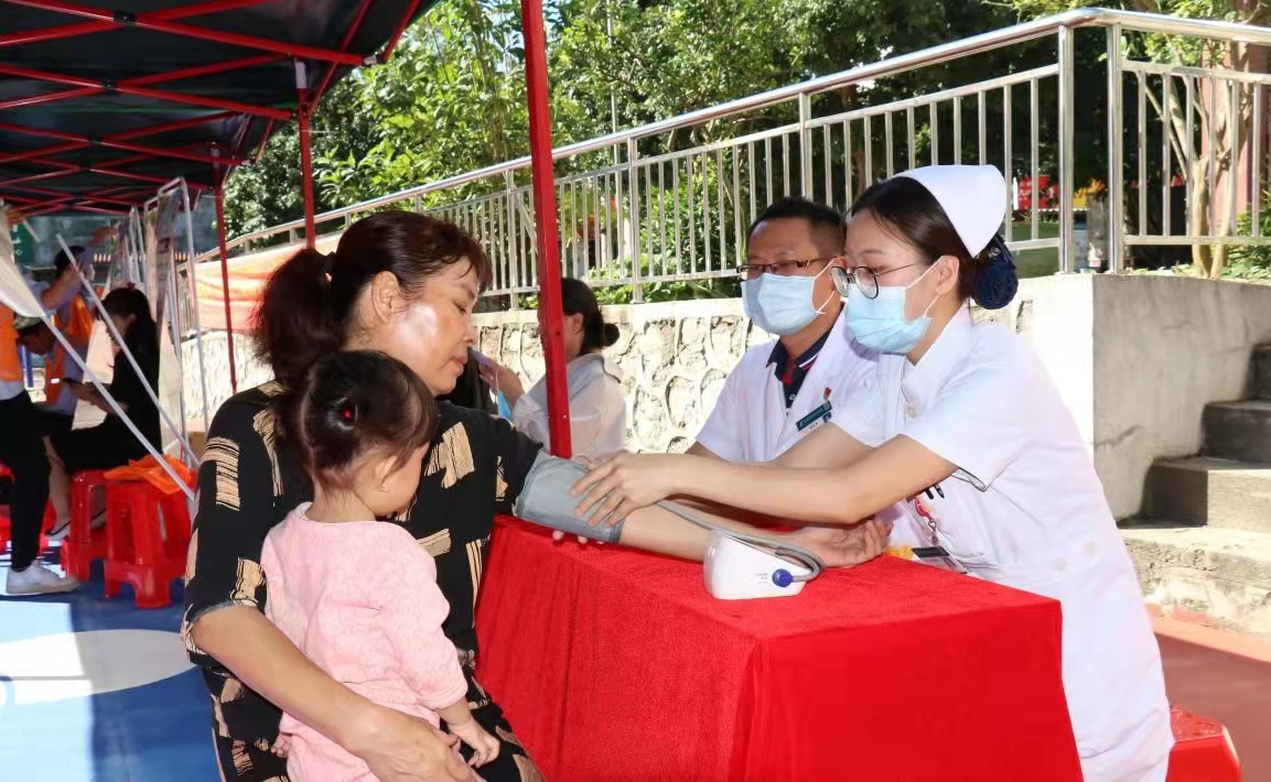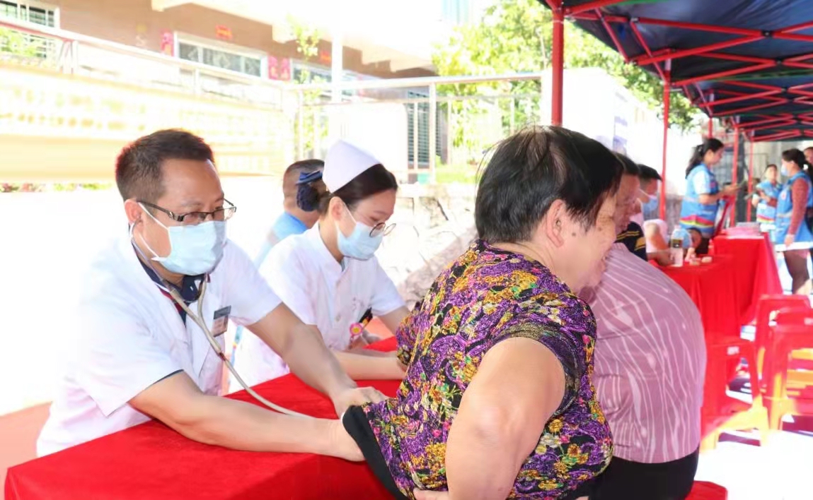 海南西部中心医院派出2名医护人员到现场开展常规义诊活动