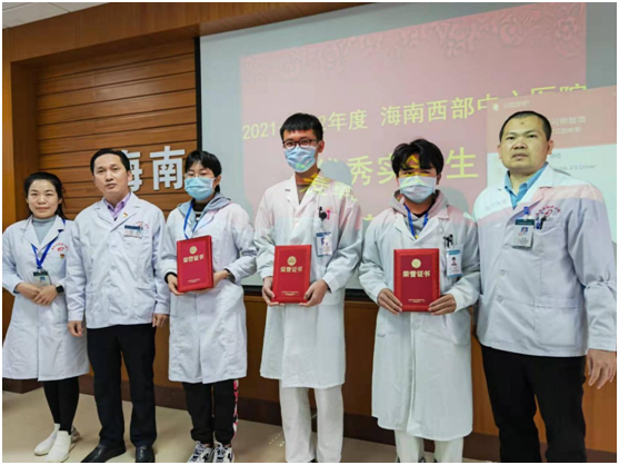 “实习是理论知识转化为实际操作的必要阶段,更是从一名医学生向合格医务工作者过渡的最佳磨练。感谢海南西部中心医院这样的一个平台。”“在老师们毫无保留的耐心指导下,我更加坚定了对临床工作的热爱和对未来工作的信心。”“在以后的工作中,我一定会铭记老师的教导,不懈努力,用好成绩来回报医院和老师。”面对来之不易的荣誉,大家激动万分,分享了在各个科室的所学、所见、所想,并感恩带教老师的规范带教和辛勤付出。