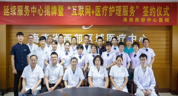 为了贯彻落实《国家卫健委进一步推进“互联网+护理服务”试点工作》《关于加强老年人居家医疗服务工作的通知》等相关文件精神,满足人民群众日益增长的居家医疗护理服务需求,2021年7月28日,海南西部中心医院隆重举行延续服务中心揭牌暨“互联网+医疗护理服务”签约仪式,海南西部中心医院领导班子成员、相关科室的主任护长、广东省优佳健康科技有限公司的项目总监曾家健先生及市场经理林振钊出席活动,此举标志着海南西部中心医院“线上预约、线下服务”的创新医疗护理服务模式正式启动。