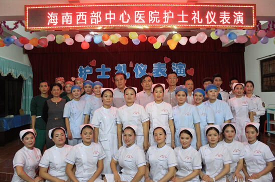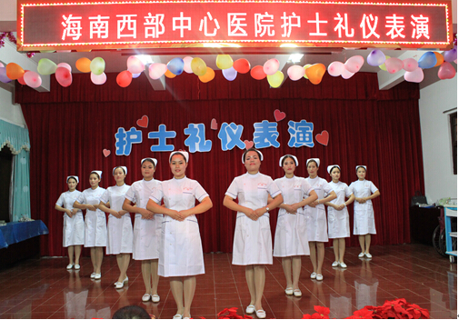 为了规范护士礼仪行为,为全院职工树立礼仪典范,提高医院的整体形象,宣扬我院文化。2015年1月28号我院于儋州市第一人民医院门诊楼四楼会议厅举办了护士礼仪表演。儋州市卫生局局长韦茂国、海南西部中心医院院长欧波、海南西部中心医院护理部主任黎菁等出席本次活动。参加表演的人员有护理部(3人)、门诊护士(16人)、供应室护士(6人)、手术室护士(8人)、急诊科护士(3人)眼科(4人)、音效调控人员(2人),全院护士及医院各职能部门领导及职工积极参加观看了演出。