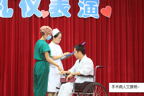 此次表演以培养护理人员文雅健康的风姿、稳健适度的步伐、规范装爷的操作、自然亲切的笑容、体贴关切的语言为目的,希望通过护士完美出色的表现与形象感染患者,有效润滑和谐护患关系,塑造医院品牌。血压计展示、手持病历夹展示、持病历夹与持血压计穿插展示、同事间的问候展示、、端治疗盘展示坐姿展示、推治疗车、六部洗手法展示、递文件夹签字展示、输液流程展示、下蹲拾物展示,中间穿插小品表演《小微》,小品结束后继续供应室、手术室、急诊科礼仪展示表演,最后以温馨的手语表演《感恩的心》作为活动的结尾,印证我们护理鼻祖,南丁格尔的这样一段名言:护理工作是平凡的工作,然而护理人员却用真诚的心去抚平病人心灵的创伤,用火一样的热情去点燃患者战胜疾病的勇气。