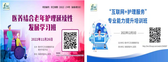 为精准回应群众需求,为群众提供便利、可及性护理服务,满足特殊人群居家护理需要,实现“线上线下同质管理”,保证护理服务规范开展,11月26日及12月3日,海南西部中心医院举办了医养结合老年延续性护理学习班、“互联网+护理服务”专业能力提升培训班。虽然疫情没有消退,但也阻挡不了学员们的学习热情,来自省内多家医疗机构的护理人员线上参加学习。