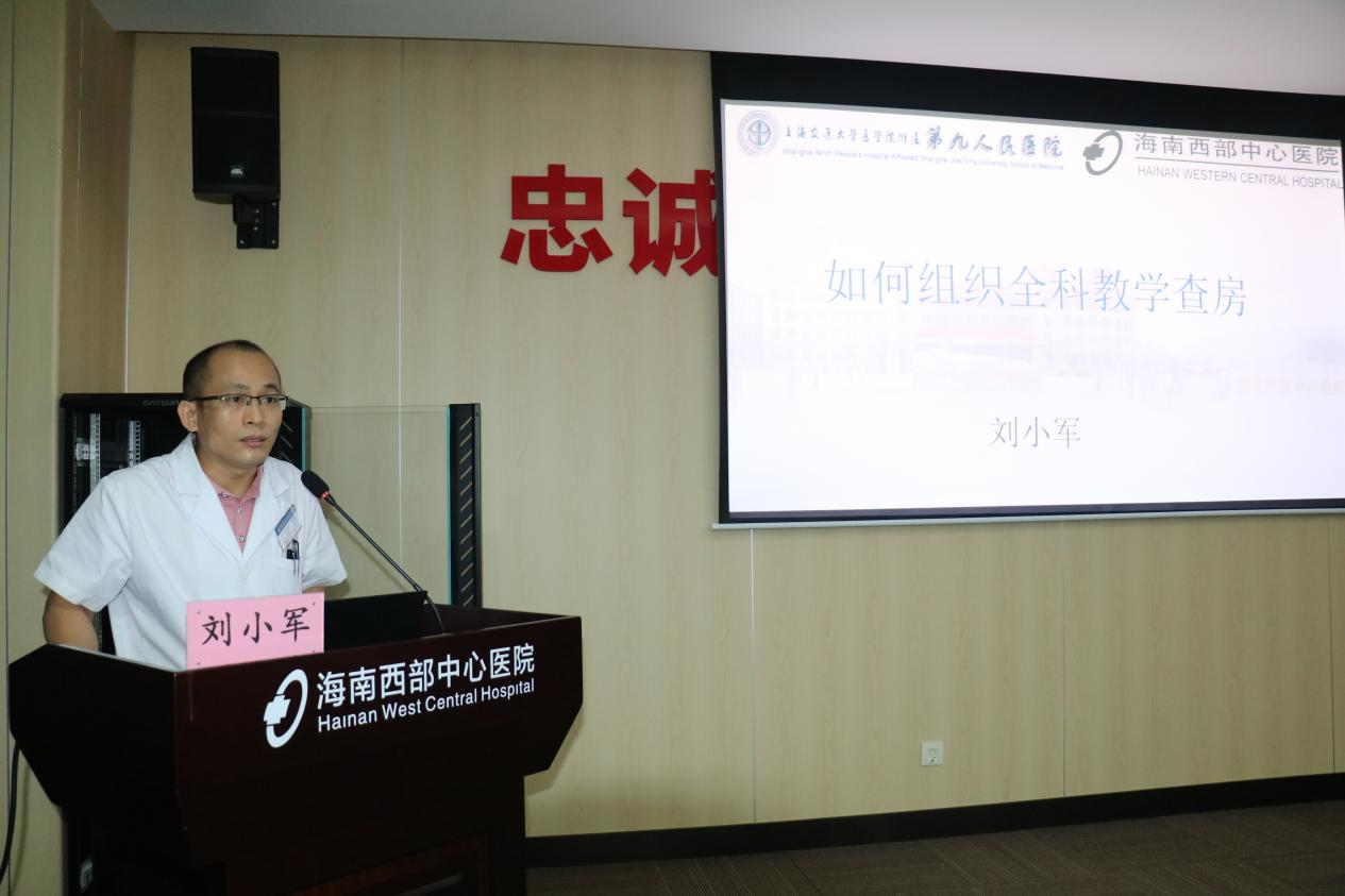 培训会上,全科医学科刘小军主任以《如何组织教学查房》为题,分别从什么是全科教学查房、教学查房的目的、教学查房的主体、教学查房组织安排、教学查房准备、教学查房的指导思想、全科教学查房流程、常见的问题及注意点八个方面进行讲解。
