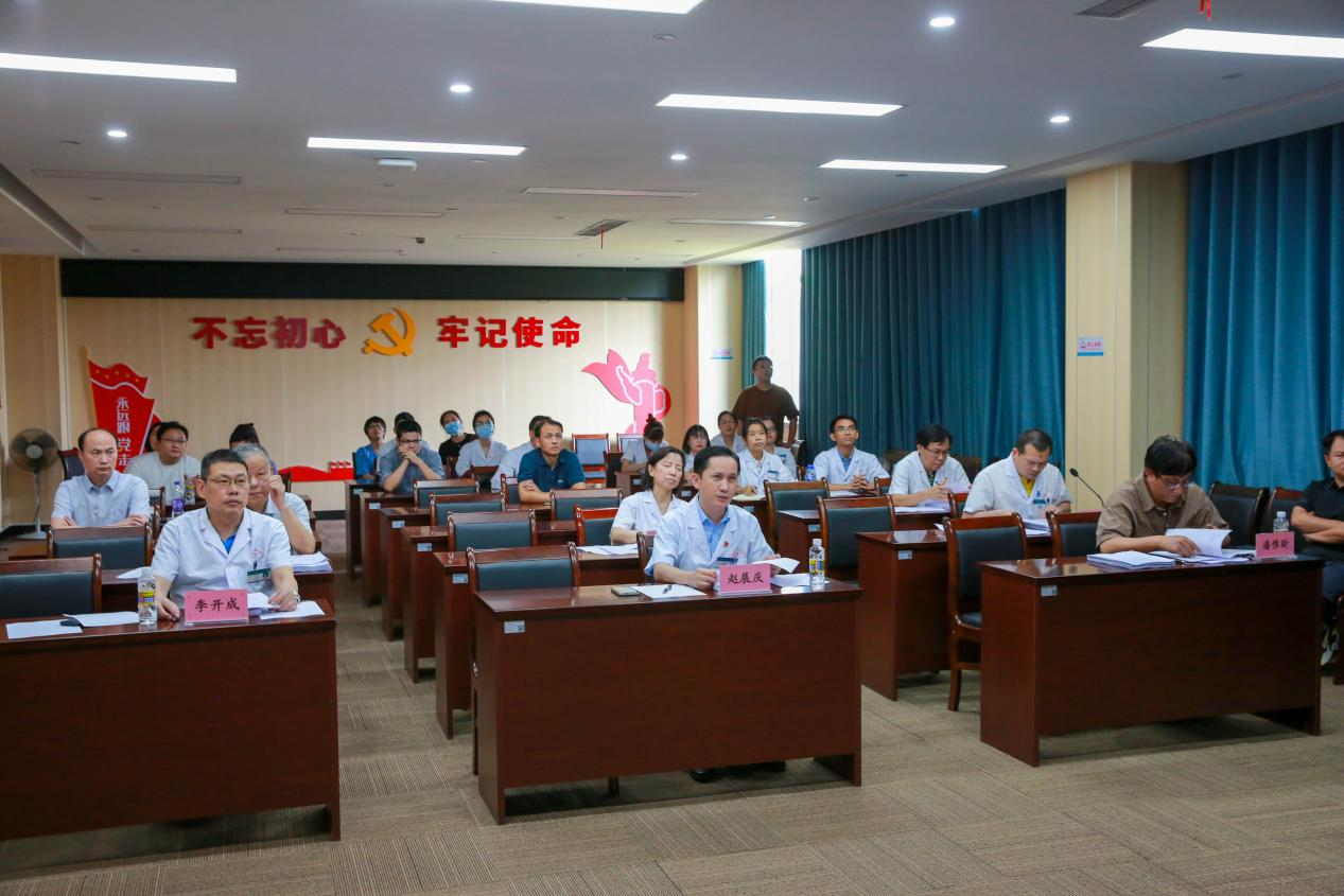 海南西部中心医院党委委员、副院长、学术管理委员会副主任赵展庆,学术管理委员会成员、专家评审沈伯雄主任、李开成主任、潘惟昕主任、翟宇主任、郑成芳主任出席会议。教学科研部主任符郁主持会议。