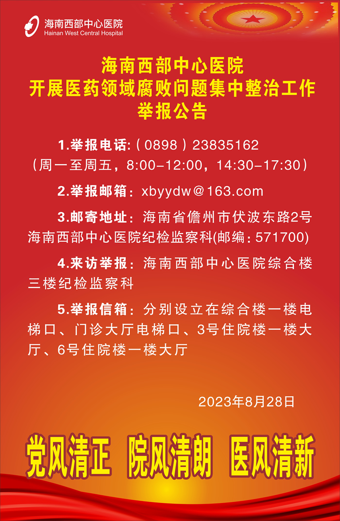 海南西部中心医院开展医药领域腐败问题集中整治工作举报公告