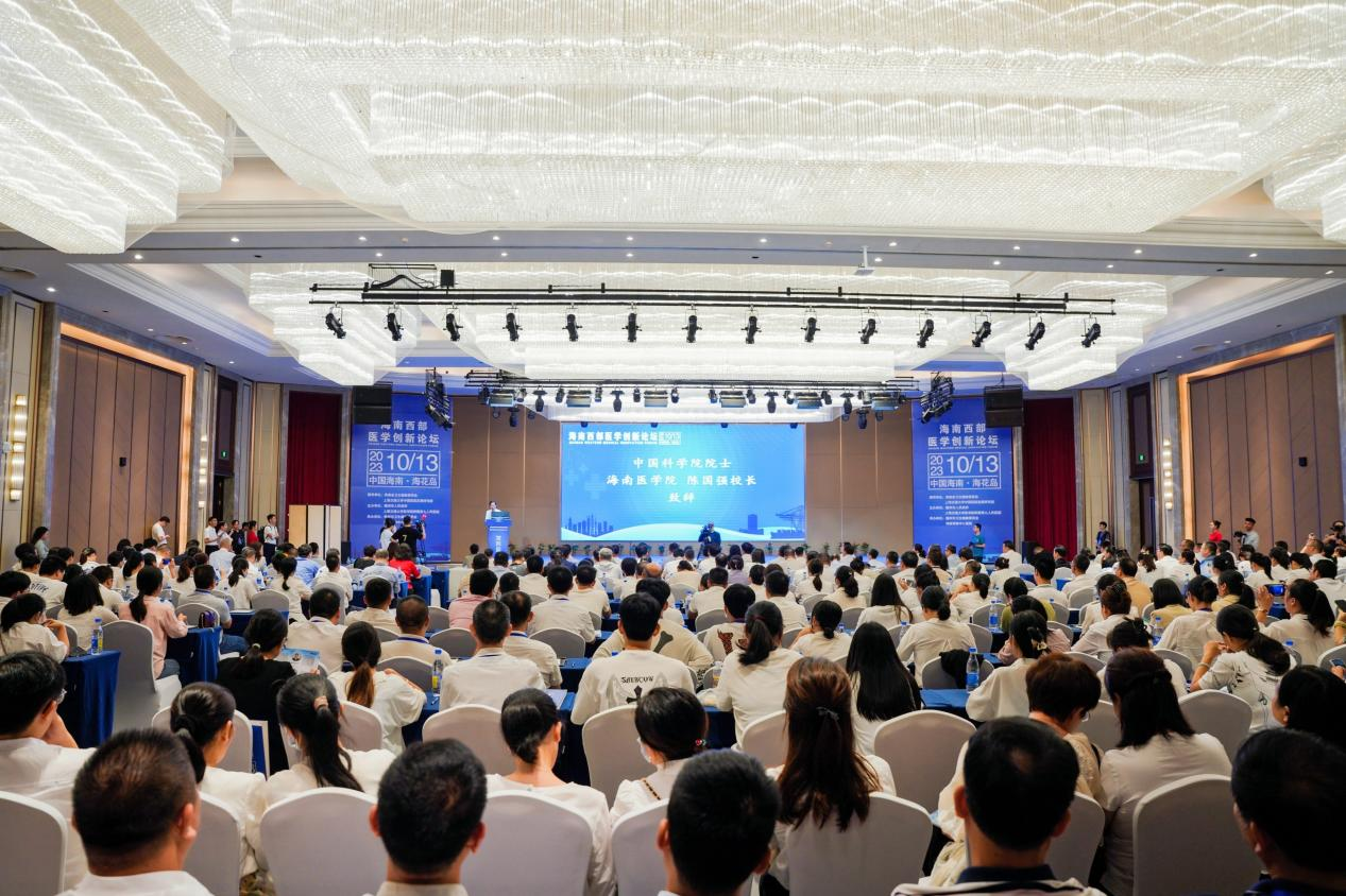 10月13日,海南西部医学创新论坛在海花岛国际会议中心举行。中国科学院院士、海南医学院校长陈国强出席并发表即席讲话现场
