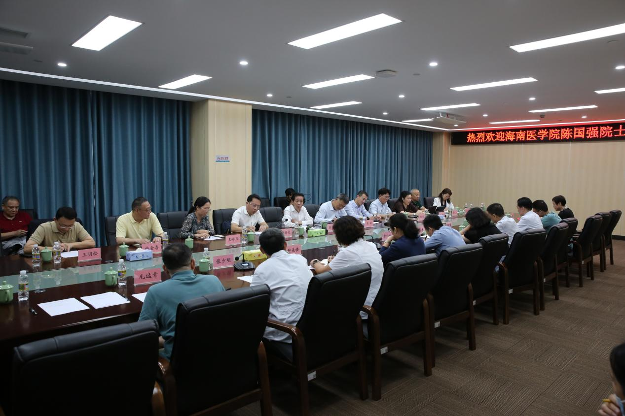 10月12日,中国科学院院士、海南医学院校长陈国强带领海医领导班子莅临西部中心医院调研座谈