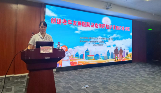 为确保我院“老年友善医院”创建工作有序推进,进一步加强医院管理,优化老年患者就医流程,提升老年患者看病就医满意度以及加强我院医疗集团内疫情防控意识。我院于2023年11月10日-11日在门诊二楼会议室举办“创建老年友善医院及疫情防控护理知识”培训班成功举办。来自市医疗机构共计300余名护理同仁齐聚一堂。海南省护理学会符林秋理事长、海南省老年病医院护理部符秀梅主任、海南省老年病医院王素萍主任、海南西部中心医院公共卫生科符月珍主任以及感染科王慧副主任医师出席会议。会议由海南西部中心医院护理部主任游锦燕主持。
