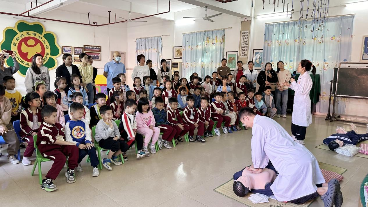 近日,海南西部中心医院携手儋州市那大新世纪幼儿园,共同开展了一场别开生面的急救科普活动,旨在增强幼儿园教师、家长和幼儿对急救知识的了解,提高他们在遇到紧急情况时的应对能力。