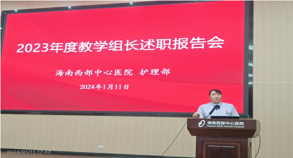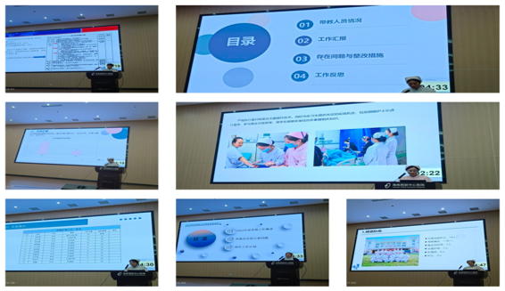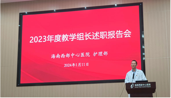 各科室护理教学组长以PPT为载体,依次上台汇报2023年度护理教学工作完成情况,分享带教经验、总结不足之处,并展示了2024年度护理教学工作计划。