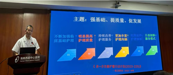 为了让护理人员对医院护理工作具体的开展情况和今后发展的方向有更为清晰的了解,游锦燕主任对2023年的工作进行了总结,同时传达各级《进一步改善护理服务行动计划(2023-2025年)》文件及省护理质量大会会议精神,指出护理部将紧扣“强基础、提质量、促发展”的主题,紧抓改善护理服务行动计划的四大任务,坚定落实国家、省、市及医院部署要求,要求全体护理人员转变工作理念、改进护理作风、提高护理效率,着力补短板、强弱项、扬优势,不断提升护理质量和业务能力,为广大患者提供全方位、全周期的健康服务。