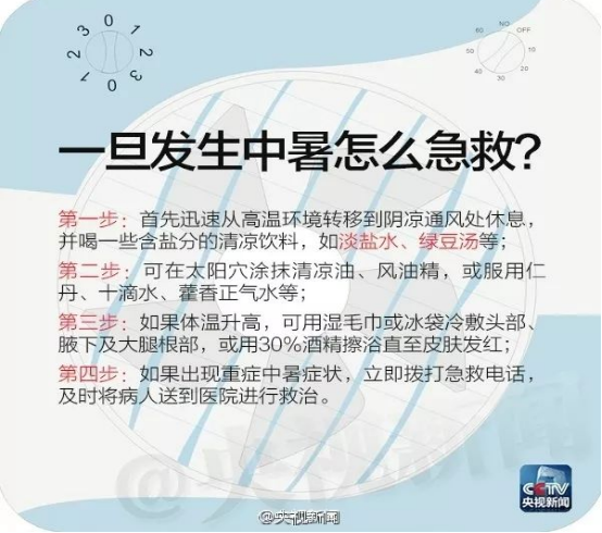 ▲迅速脱离引起中暑的高温环境,选择阴凉通风的地方休息;