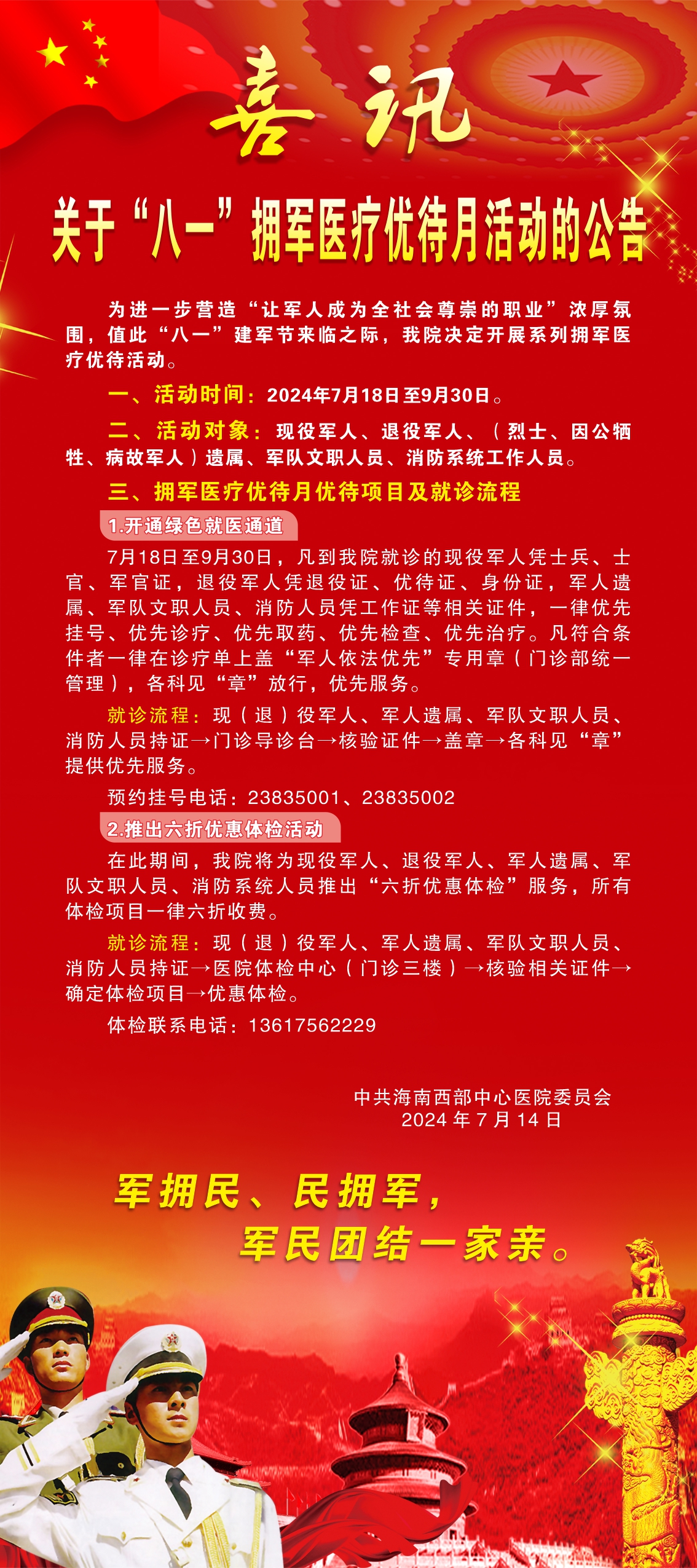喜讯丨关于“八一”拥军医疗优待月活动的公告