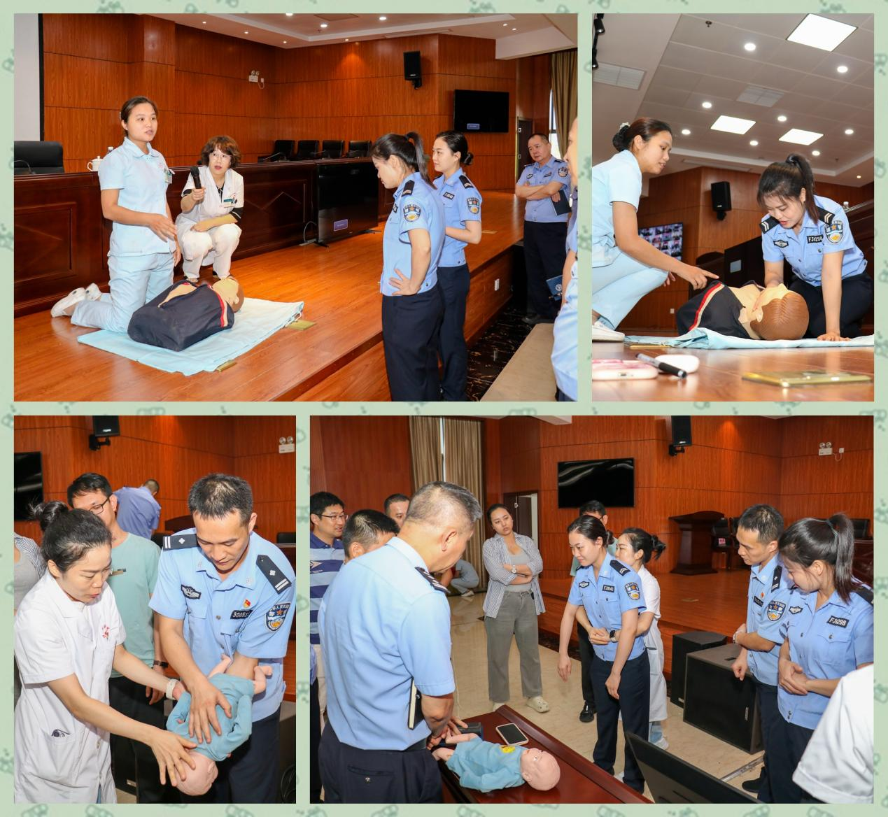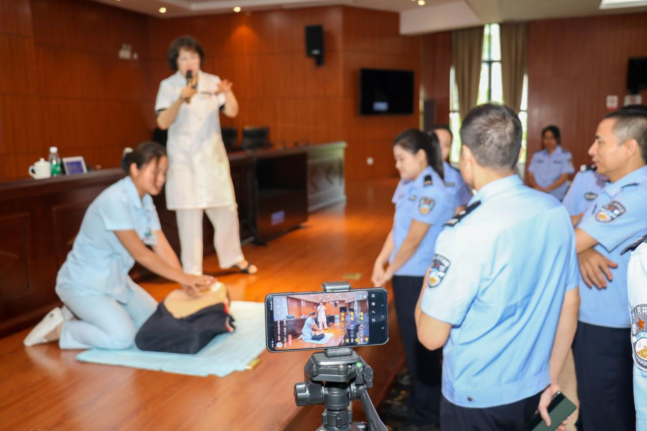 除了为干警们提供更加全面、专业的健康指导,帮助他们更好地了解自身健康状况,掌握科学的健康知识和方法外。我们还特别安排了急救技能培训环节。现场,医疗专家详细讲解了心肺复苏术、海姆立克急救法等常见急救技能的操作步骤和注意事项。通过模拟演练和互动问答,干警们不仅掌握了这些急救技能的基本操作,还学会了如何在紧急情况下迅速有效地进行自救和救人。