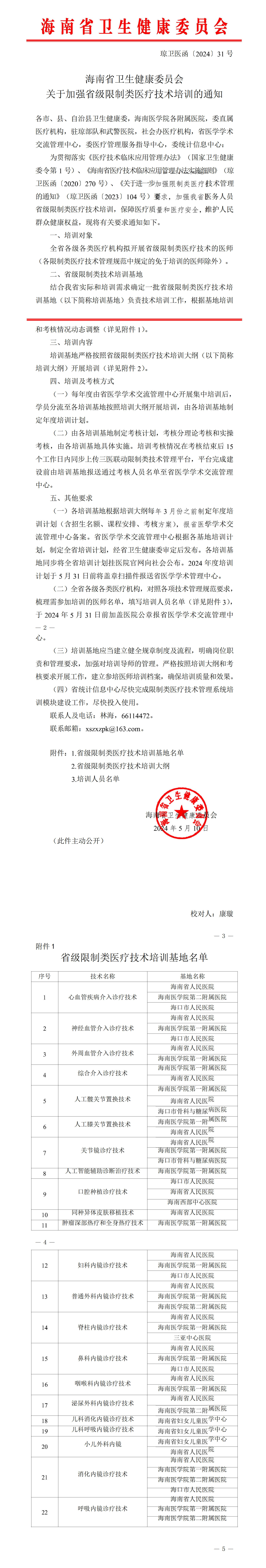 海南省卫生健康委员会 关于加强省级限制类医疗技术培训的通知