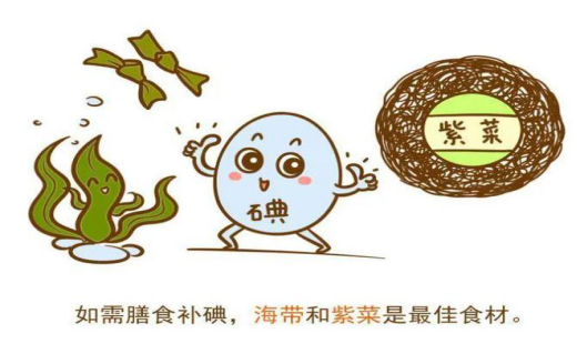 6.天然含碘较高的食品有:海带、海鱼和紫菜。经常吃海带不但可以补充体内的碘,而且还可以摄入微量元素、氨基酸和维生素等。海产品是自然界中含碘较高的食品,平时应注意多吃这类食品。