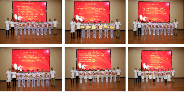 海南西部中心医院院长汪新民宣读《海南西部中心医院医疗集团关于2025年“5·12国际护士节”的表彰通报》,并与班子成员一同为受表彰科室及个人颁奖。