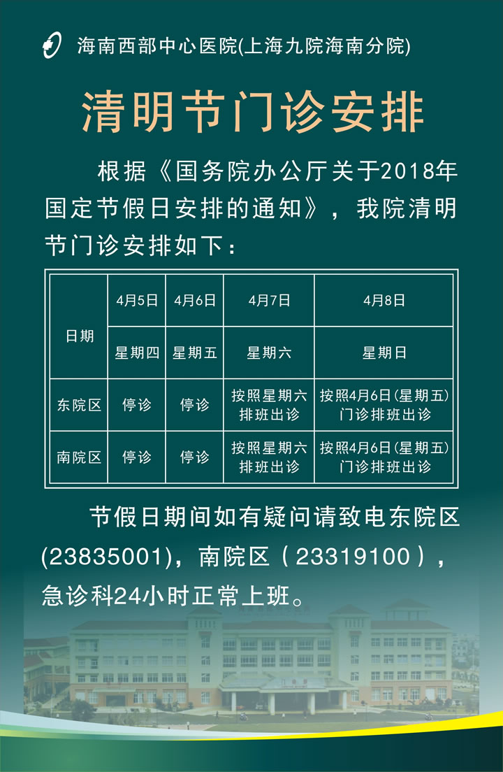 当前位置:网站首页 > 通知公告 > 清明节门诊安排通知