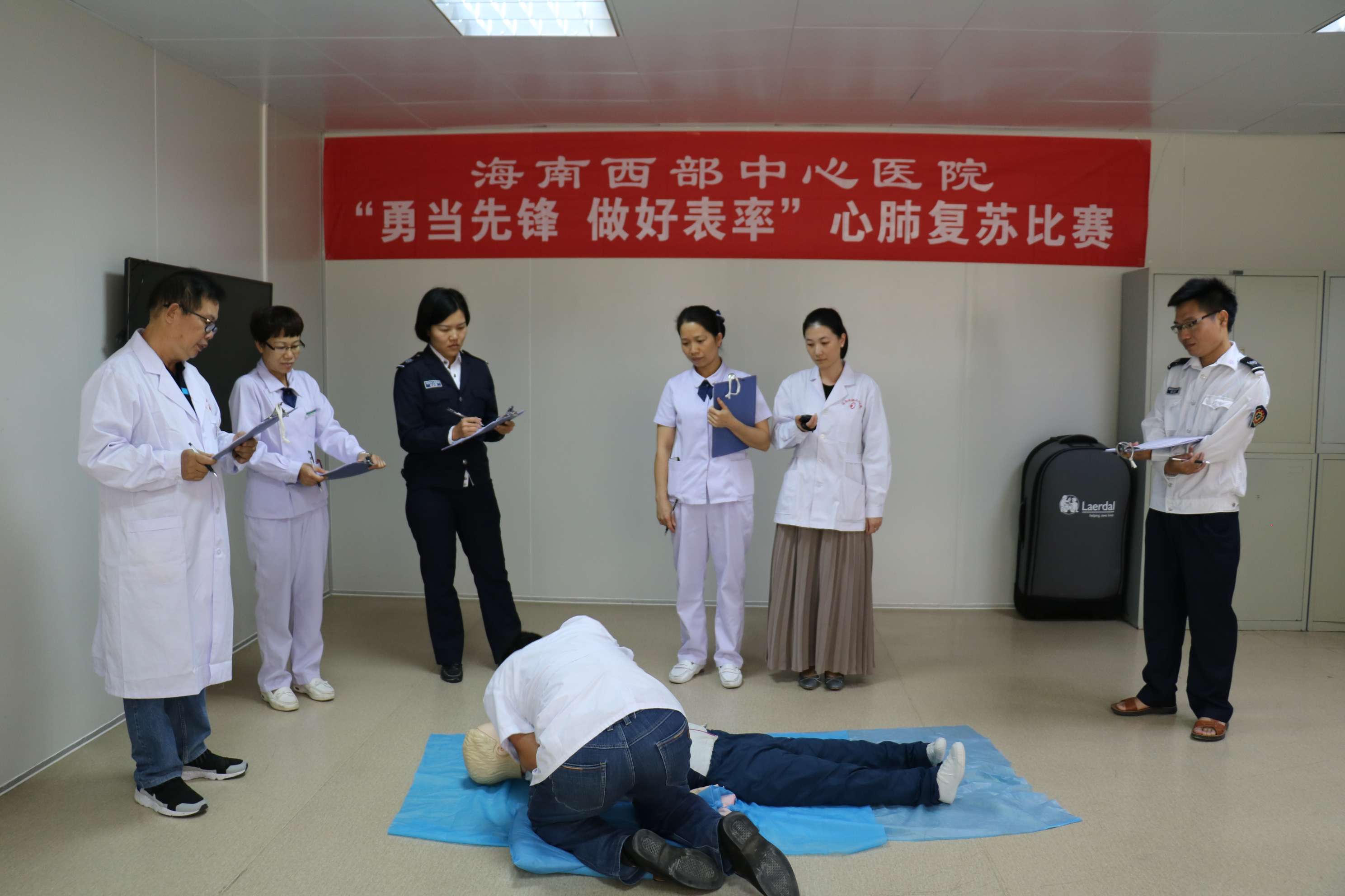 11月22日下午,由海南西部中心医院各党支部择优选送的24名党员,分别代表该院8个党支部,在该院东院区门诊二楼护理示教室开展“单人徒手心肺复苏”技能比赛。院党委副书记苏林光现场指导点评,来自该院急诊科的5名资深医护人员担任此次比赛的评委。