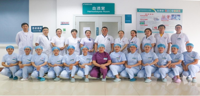 我科占地面积约950平米,透析室床位36张。医护人员共29名,其中副主任医师3名,主治医师医师3名,医师6名;主管护师2名,护师15名,技师1名。我科目前拥有瑞典金宝透析机34台,德国费森血滤机1台,日本东丽血滤机1台,德国劳尔双反渗水处理机1台,我科开展了血液净化的各种先进治疗方法和技术。如血液透析、血液透析滤过,床旁血滤、血液灌流、血浆置换、血将吸附等。对各种中毒、急慢性肾功能衰竭、心功能衰竭、肝功能衰竭、多脏器功能衰竭、风湿病、免疫系统疾病,神经系统免疫性疾病等提供替代或支持治疗。